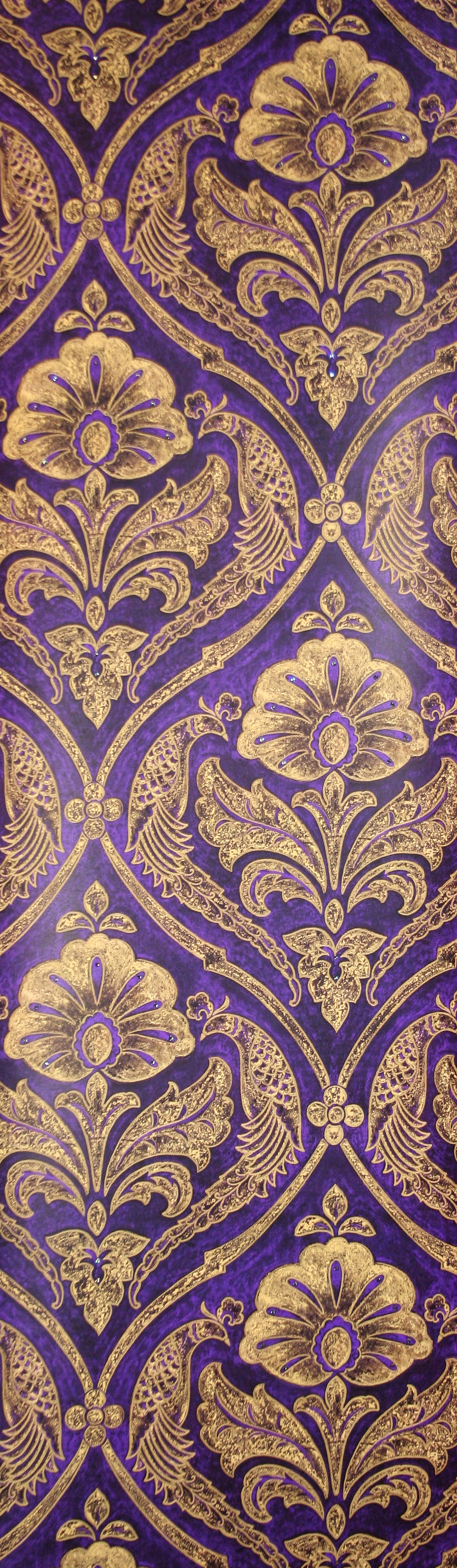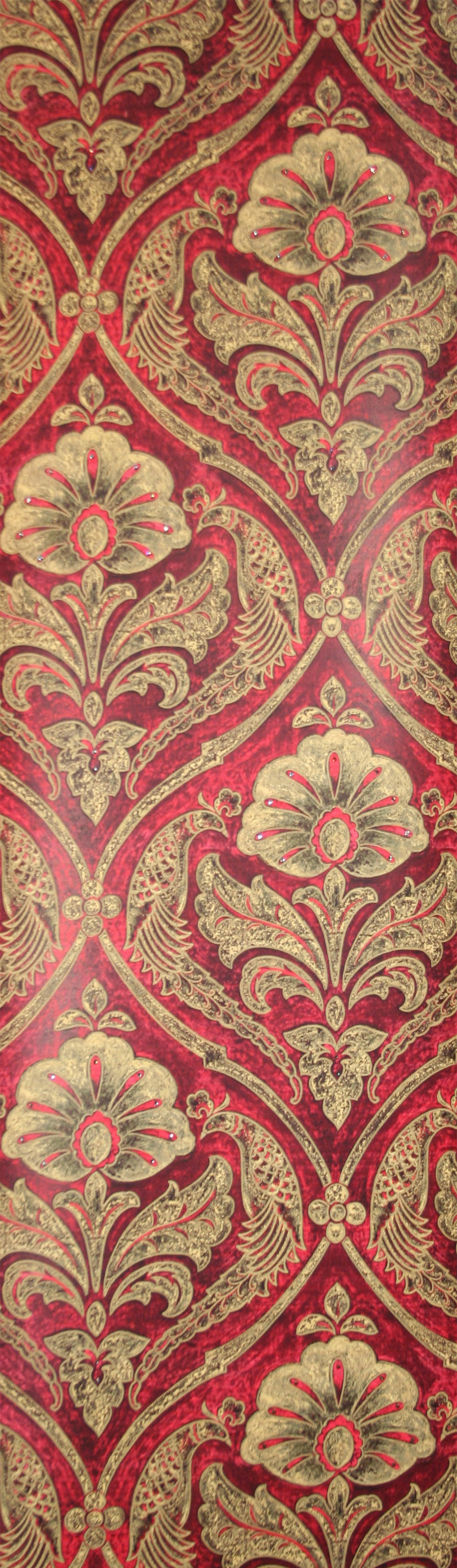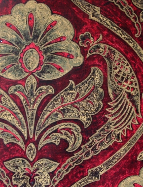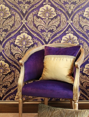 A renaissance damask design, incorporating birds of paradise with a unique blend of antique hand painted finish, giving a rustic effect in rich opulent colours. Paradise brings a matching velvet fabric with luxurious mix and match accessories creating a regal style.