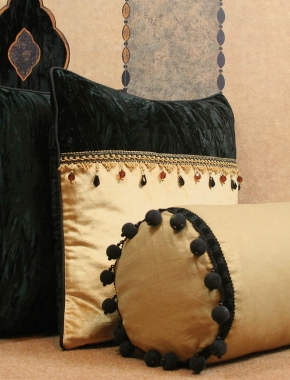 A masculine and antique style of gold and black shades with textured velvet Appliqué and classic accessories to mix and match.