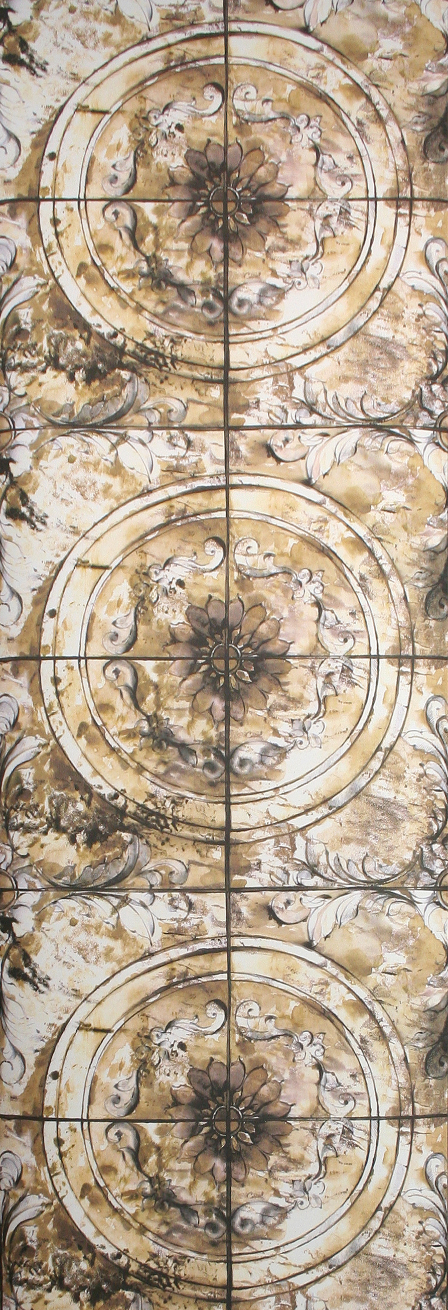 SUNTILE offers a classical sundile feature which is incorporated in a tile effect. This is an artistic impression that brings an original vintage style with a watercolour finish hand write, in addition to the delicate focal point of antique crystals.