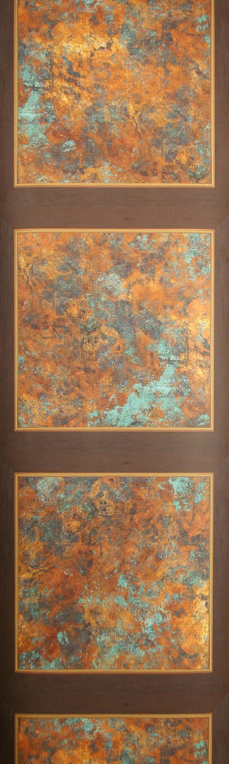 MALTERN presents a tasteful and weathered look with a natural Verdigris impression. This is set within dark wooden panel frames with metallic shine of silver and gold beading to create a luxurious and debonair feel for modern living.