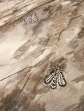 MARBELLA presents a watercolour and marble style fusion with an artistic impression of natural marble effect detailing. In addition this design brings a sophisticated embroidery feature of a Napoleonic bee in a metallic finish.
