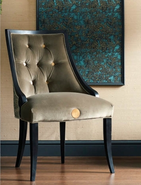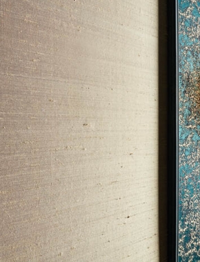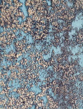 A distressed and modern design influenced to create a textural, antique look with an ingenious version of Verdigris, which is a bright blue-green patina that forms on brass or copper caused by atmospheric oxidation. This fabric has a natural consistency of polyester, nylon and cotton in the weave and the pattern is highlighted with hints of black and gold yarn. This fabric is available with Swarovski® crystals and can be laminated for textile wallcoverings.