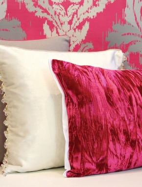 As the name suggests this is a traditional silk weaving technique with a modern design take, giving a distinctive shaded effect in a rich damask form incorporating floral elements. New-Ikat offers a contrasting Ombre silk fabric creating sheer lavishness with a palette of mix and match fabrics to accessorise.
