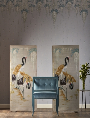 Wisteria Cranes Silk Mural - Freestanding Panel