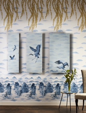Flying Cranes Silk Mural - Wall Mounted Panel