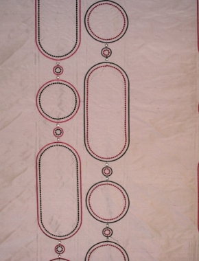 A contemporary embroidered design on a traditional silk dupion finished with Crystallized Swarovski Elements.