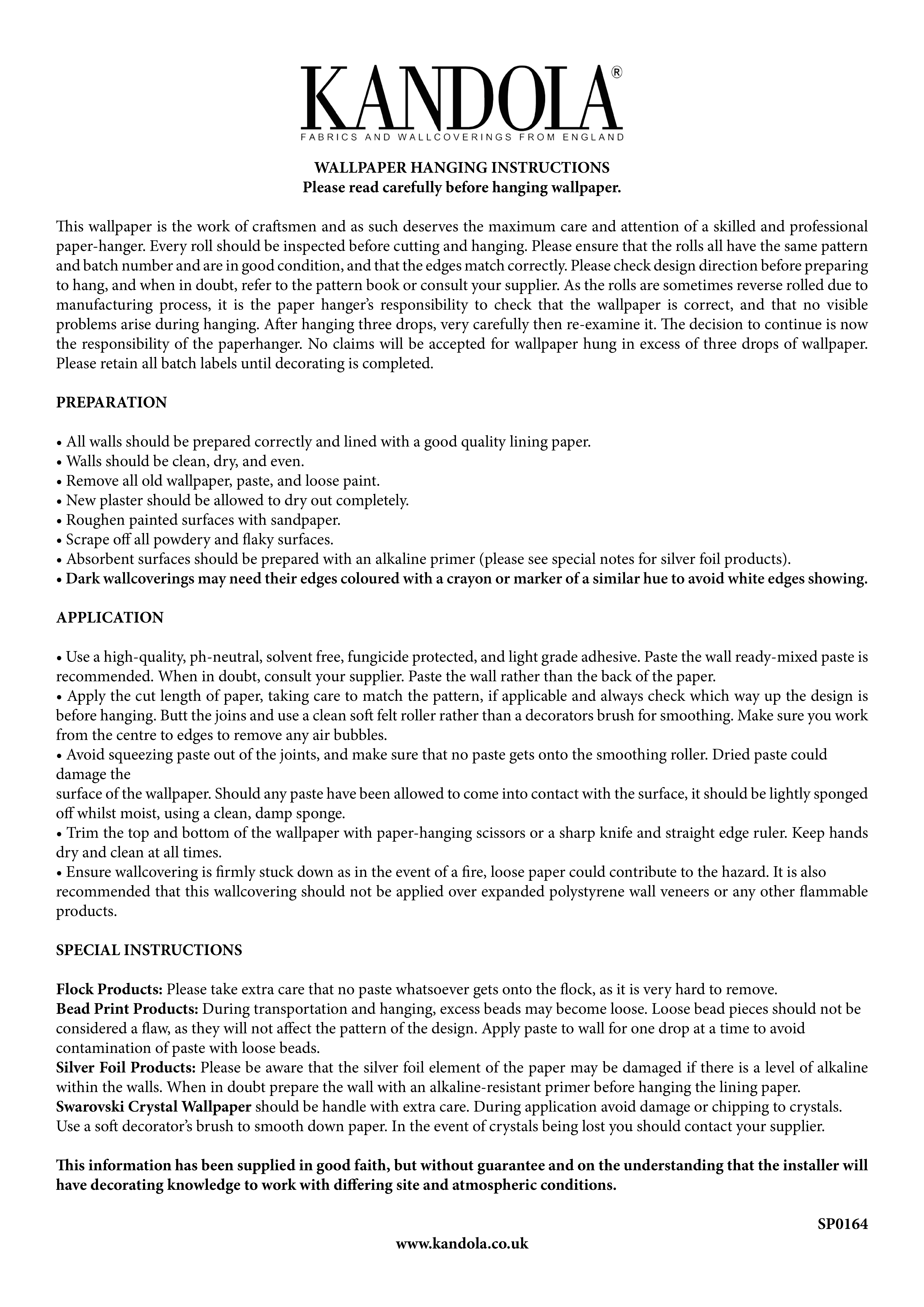 INSTRUCTIONS: HANGING WALLPAPER